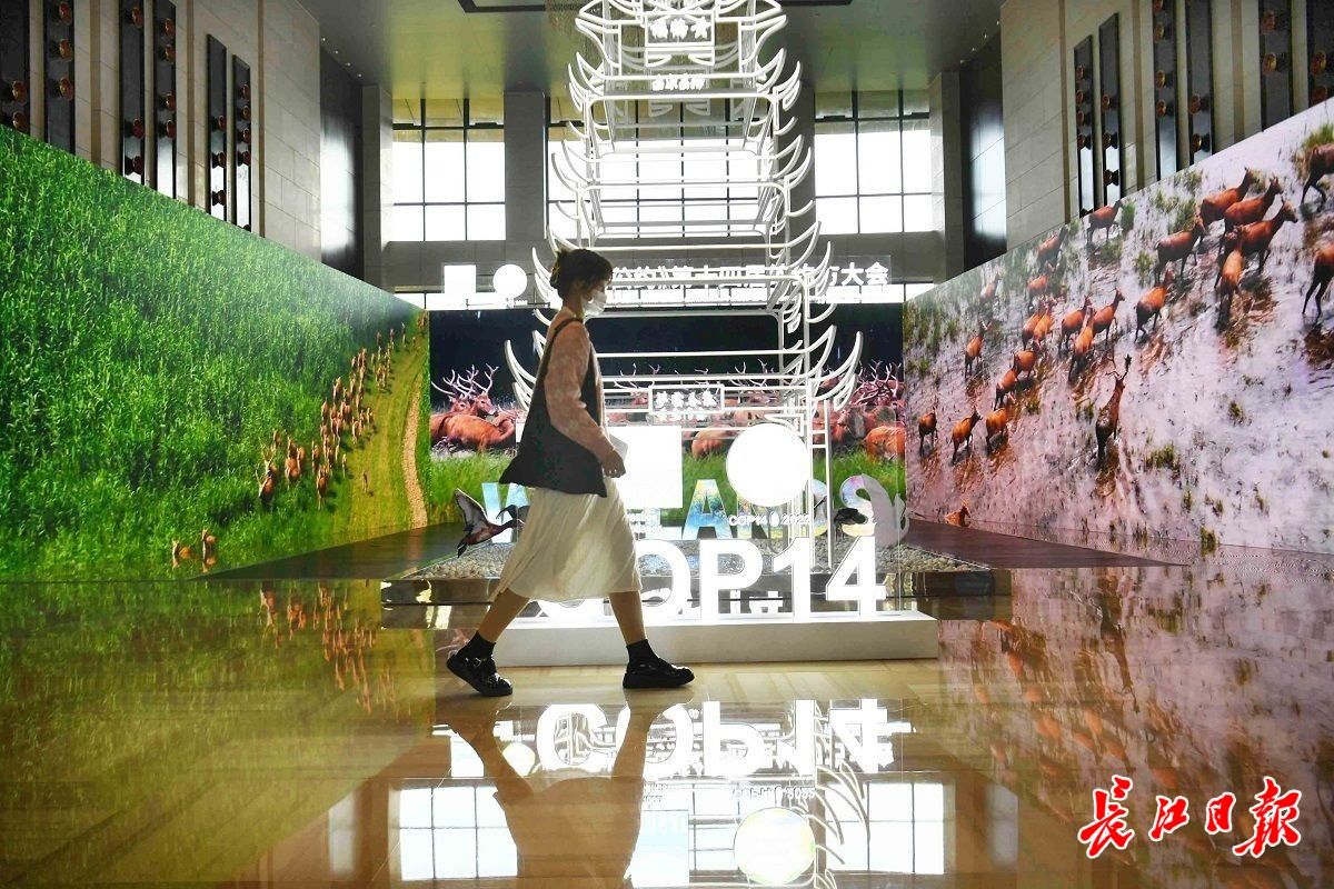 11月5日《湿地公约》第十四届缔约方大会在武汉开幕,全国主流媒体记者聚焦东湖。记者实地探访湿地大会媒体中心、东湖华侨城湿地公园,在落雁景区观看中国履行《湿地公约》30周年成就展和栖满枝头的鸬鹚,参观东湖湿地生态修复等景观。(长江日报记者高勇 摄影报道)