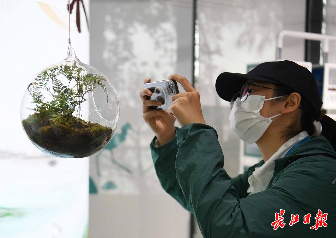 记者在拍摄中国履行《湿地公约》30周年成就展的湿地植物标本。