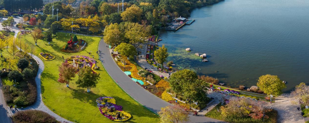 金秋菊展东湖展区俯拍。 龚建国 摄