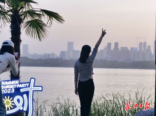 游客们在东湖畔落日派对体验度假风情。 记者夏俊俊 摄