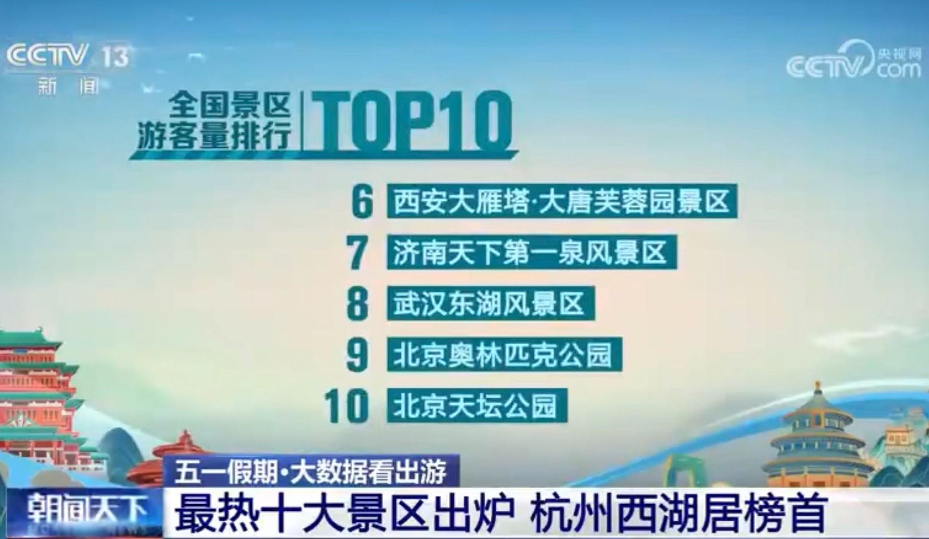 大数据看出游,武汉东湖风景区成为全国最热十大景区之一。