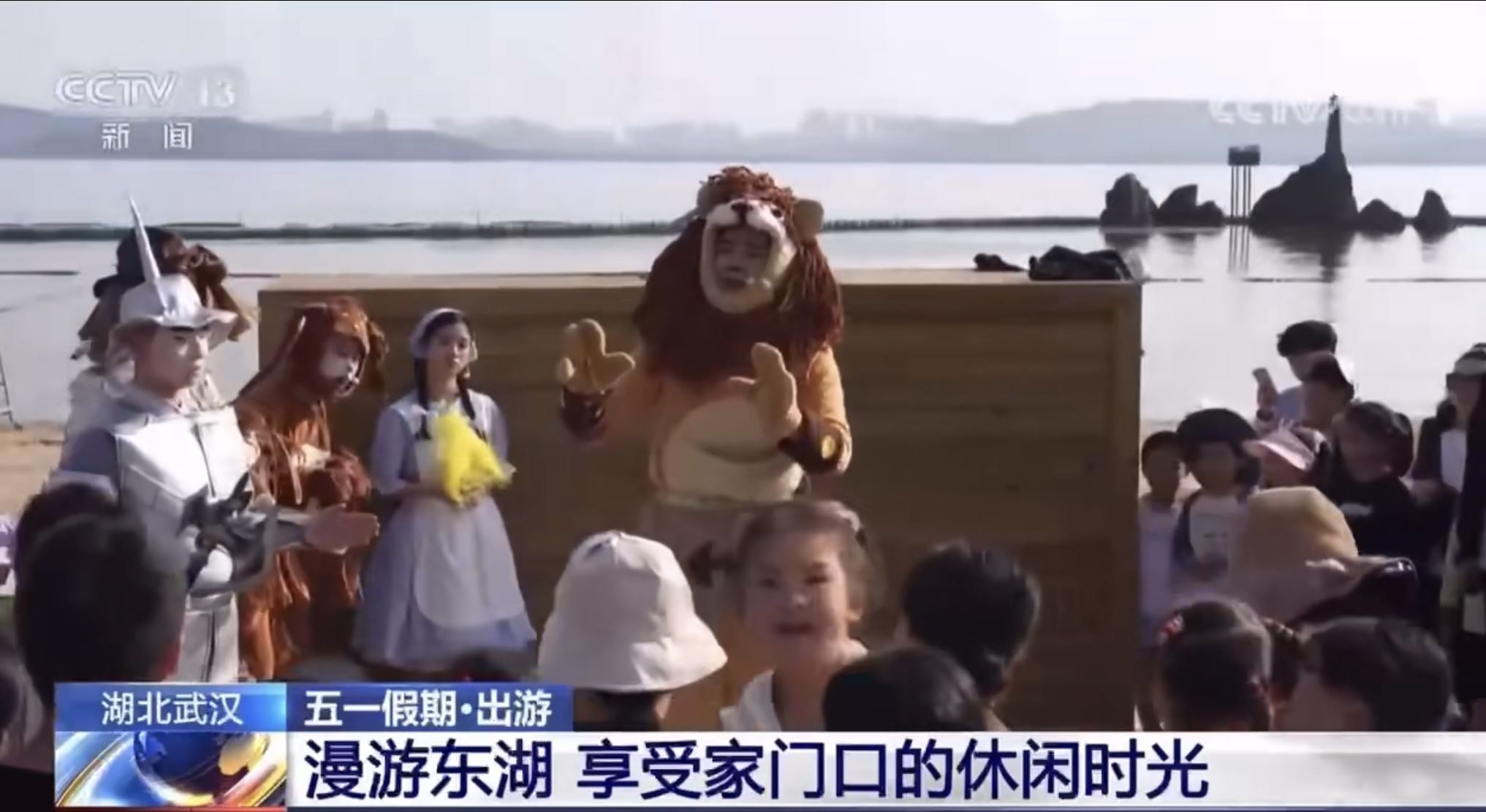 “五一”期间,央视持续聚焦武汉,在《新闻联播》《朝闻天下》等栏目以直播连线、新闻播报等形式,带领全国观众走进了东湖,不仅聚焦了东湖的航拍大景,还深度走进了东湖绿道、东湖沙滩等打卡地,展现出市民游客徜徉在这片乐园中的幸福场景。