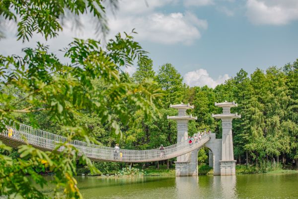 “鹊桥”延续了《牛郎织女》的爱情故事,120米长的“雁洲索桥”曾挂满沉甸甸的同心锁,在“山盟海誓”前约定终生,穿着婚纱的新人徜徉在玫瑰花海......正因为见证了太多关于爱情的仪式感,落雁景区也被市民游客称为“爱情园”“爱情岛”。