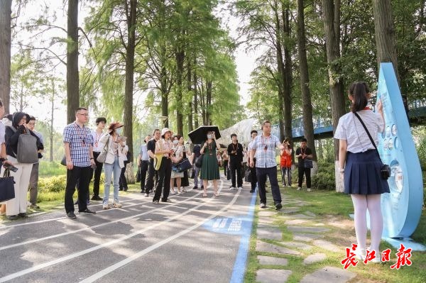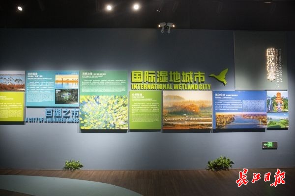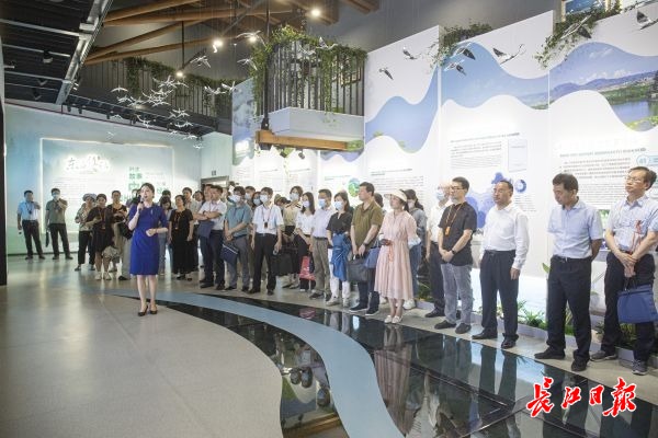 中国履行《湿地公约》30周年成就展是本次行程的另一关键点位,位于落雁景区和磨山景区交界处的郊野道上,由原先的废弃水厂改造而来。展厅中的一组组数据,讲述着中国加入《湿地公约》30年来的发展历程和丰硕成果,诠释着保护国家生态安全的重要性,引得现场来宾啧啧称赞。