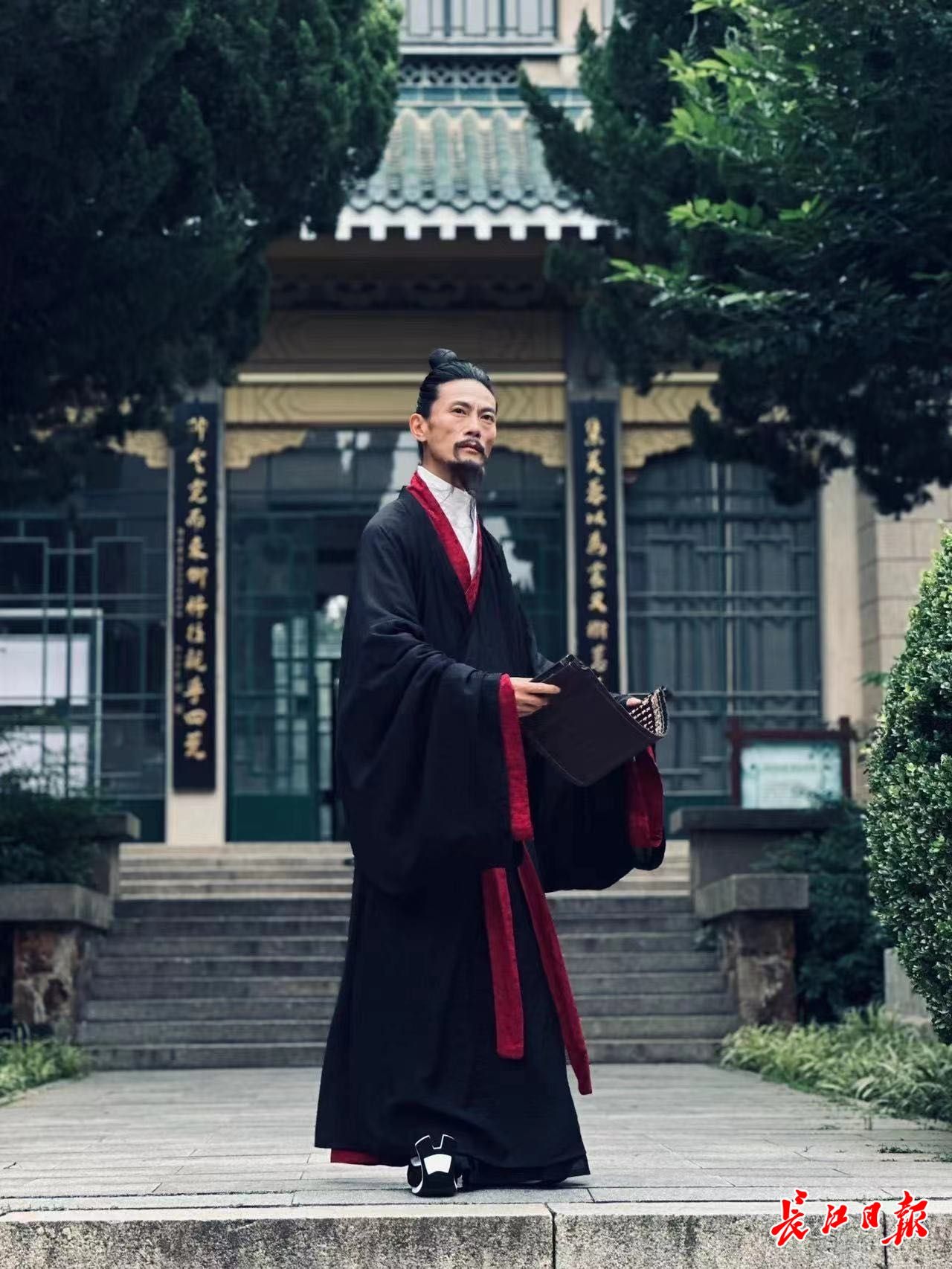 屈原扮演者明超在东湖听涛景区行吟阁前。