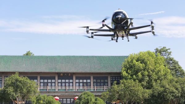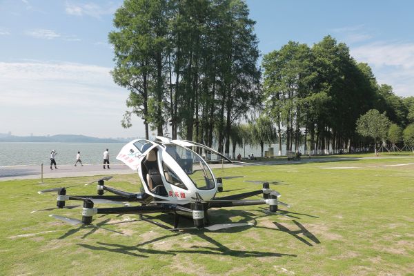 7月5日,一架由国内智能飞行器企业亿航智能自主研发的载人自动驾驶飞行器在东湖上空完成试飞,在市民游客的欢呼声中,飞行器平稳地下降停靠在听涛湖畔。据悉,未来游客或可乘飞行器从空中穿越景区,将东湖湖光山色尽收眼底。