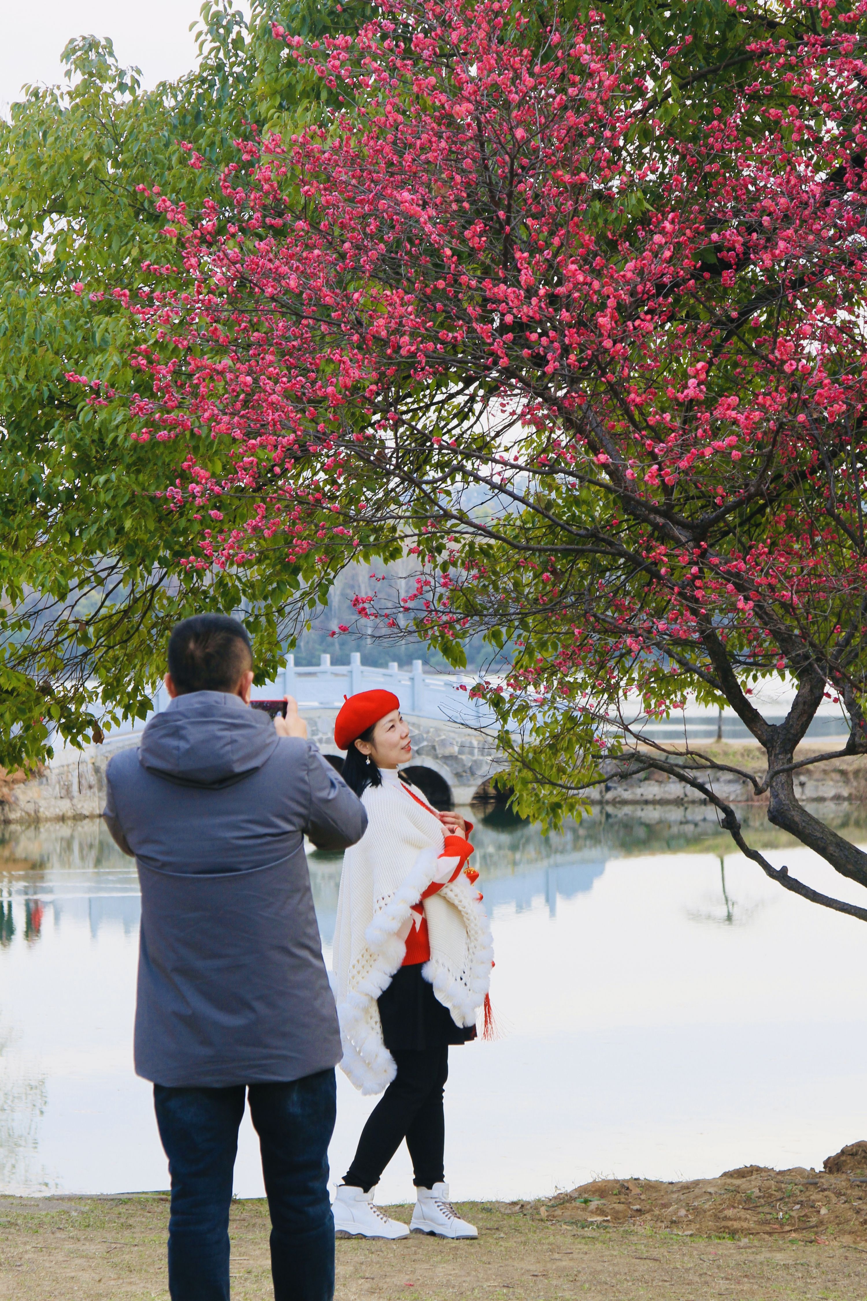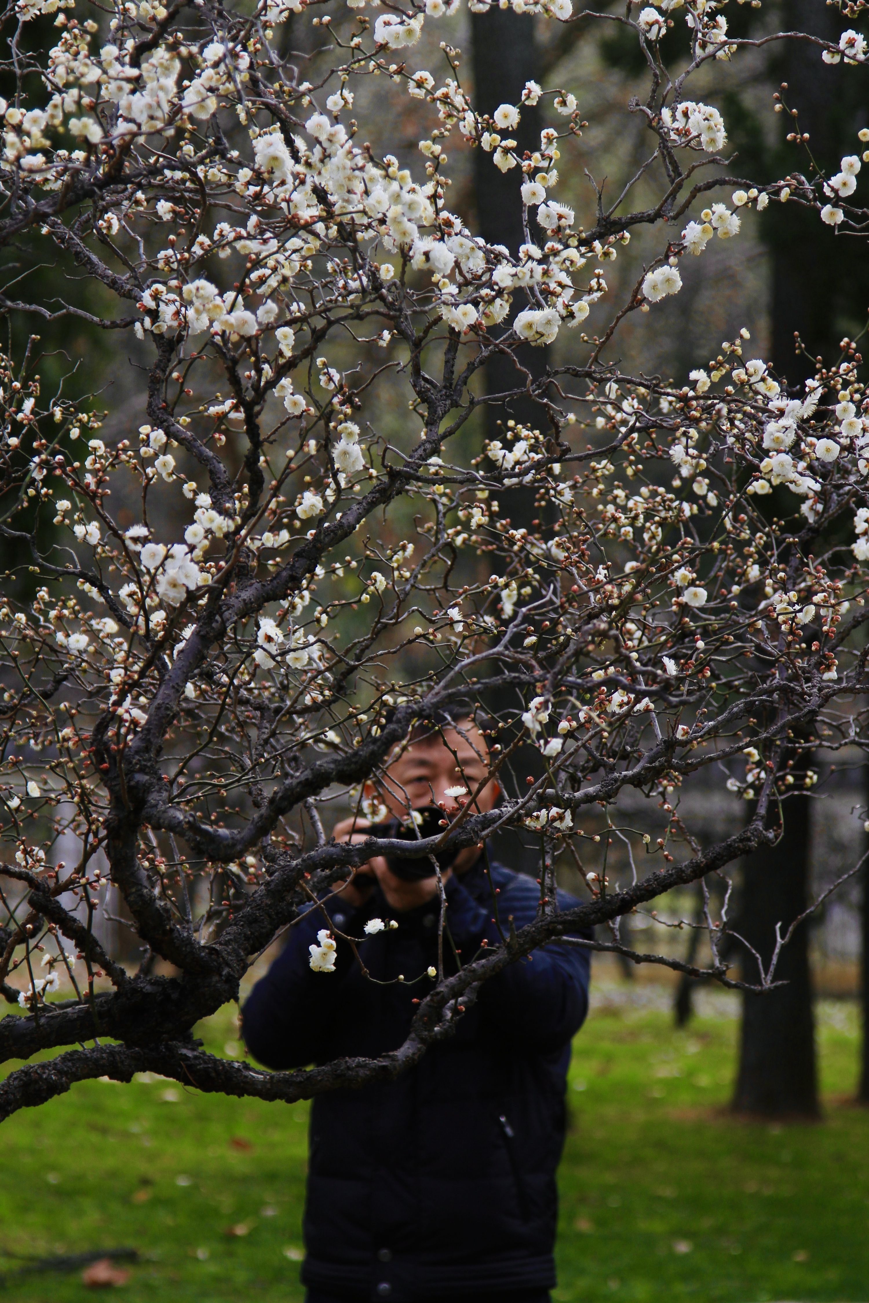 游客们精心打扮抵达东湖梅园,拍摄与梅同框的合照。赵丽摄