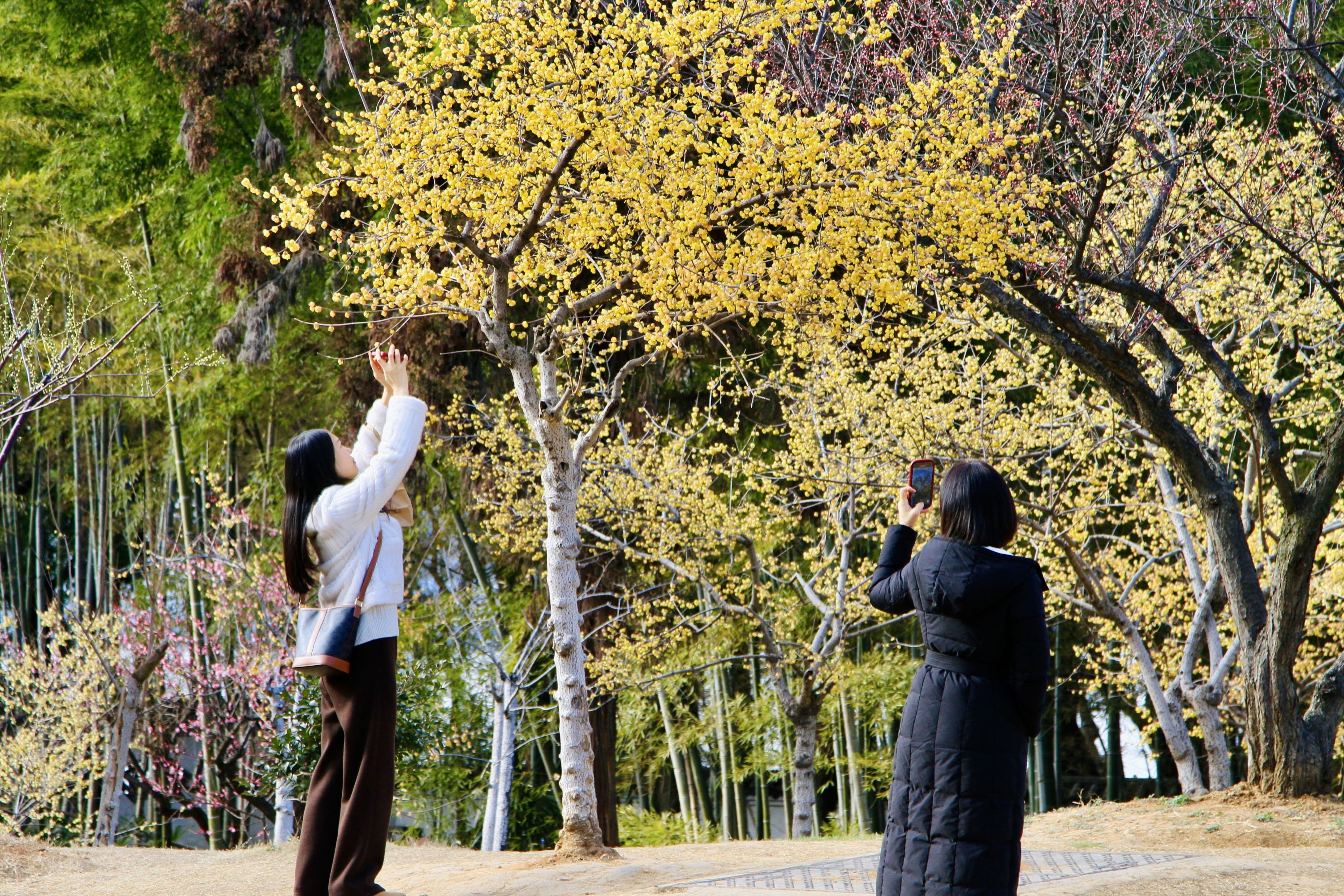 本周末,东湖梅园成为市民游客们的打卡热点,园内蜡梅、梅花肆意绽放,暗香浮动,吸引全国游客纷至沓来,共赴这场武汉花约。