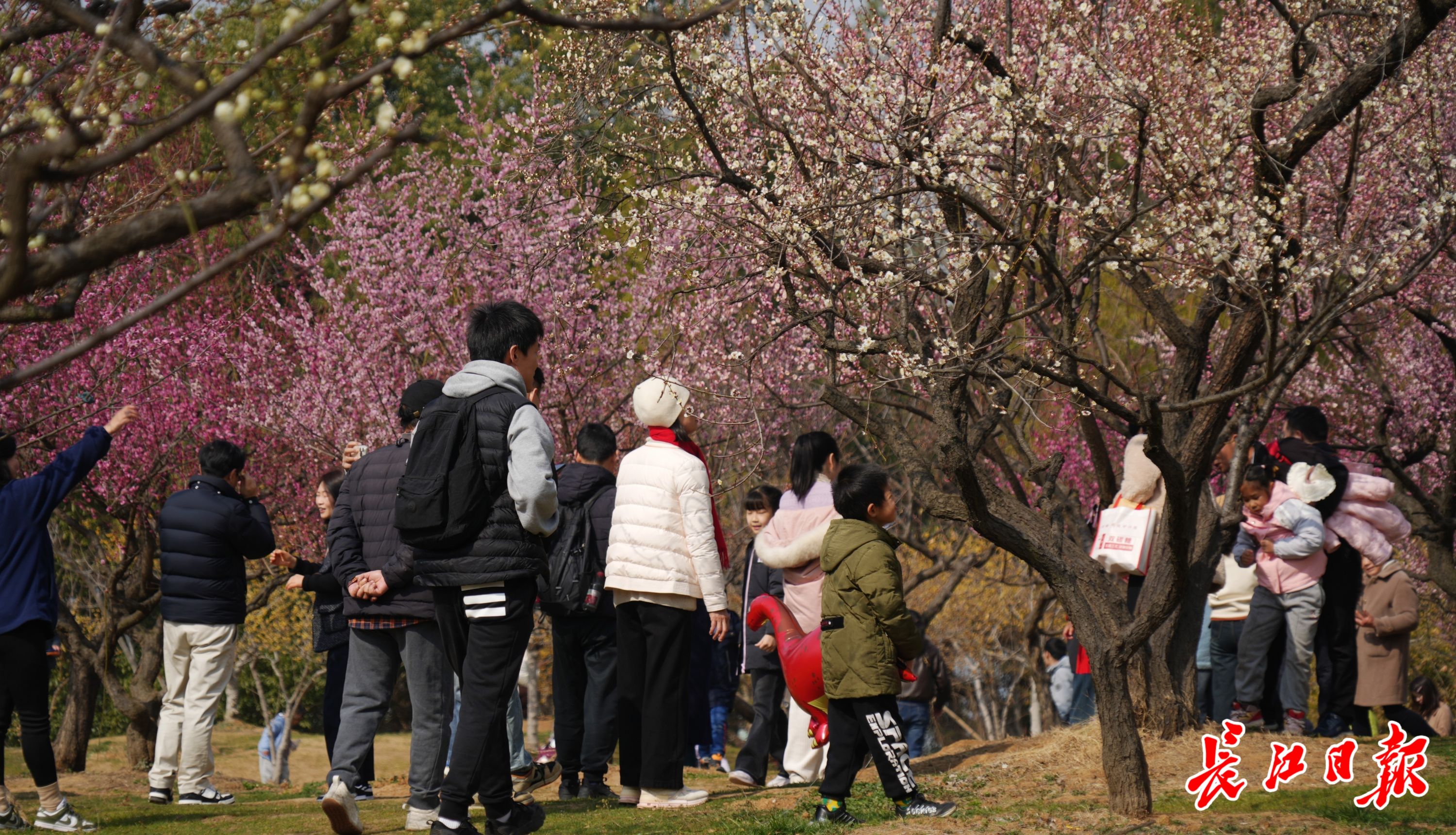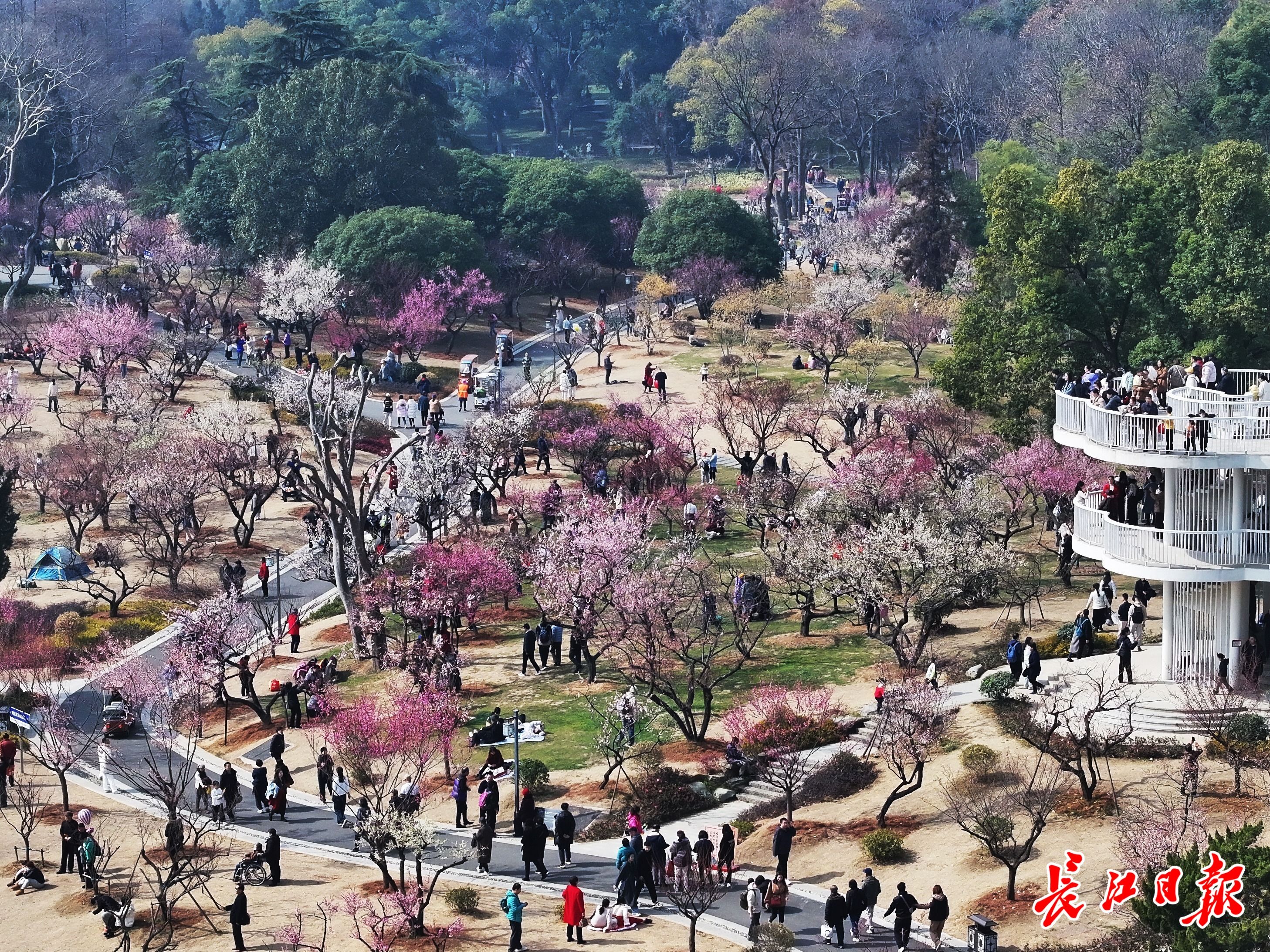 2月16日,天气晴好,随着气温回升,东湖梅园内2万余株梅花进入全盛花期,如云似雪的花海漫卷枝头,吸引数万市民游客专程前来踏春寻梅,园内处处可见举家出游、携友赏景的热闹场面。
