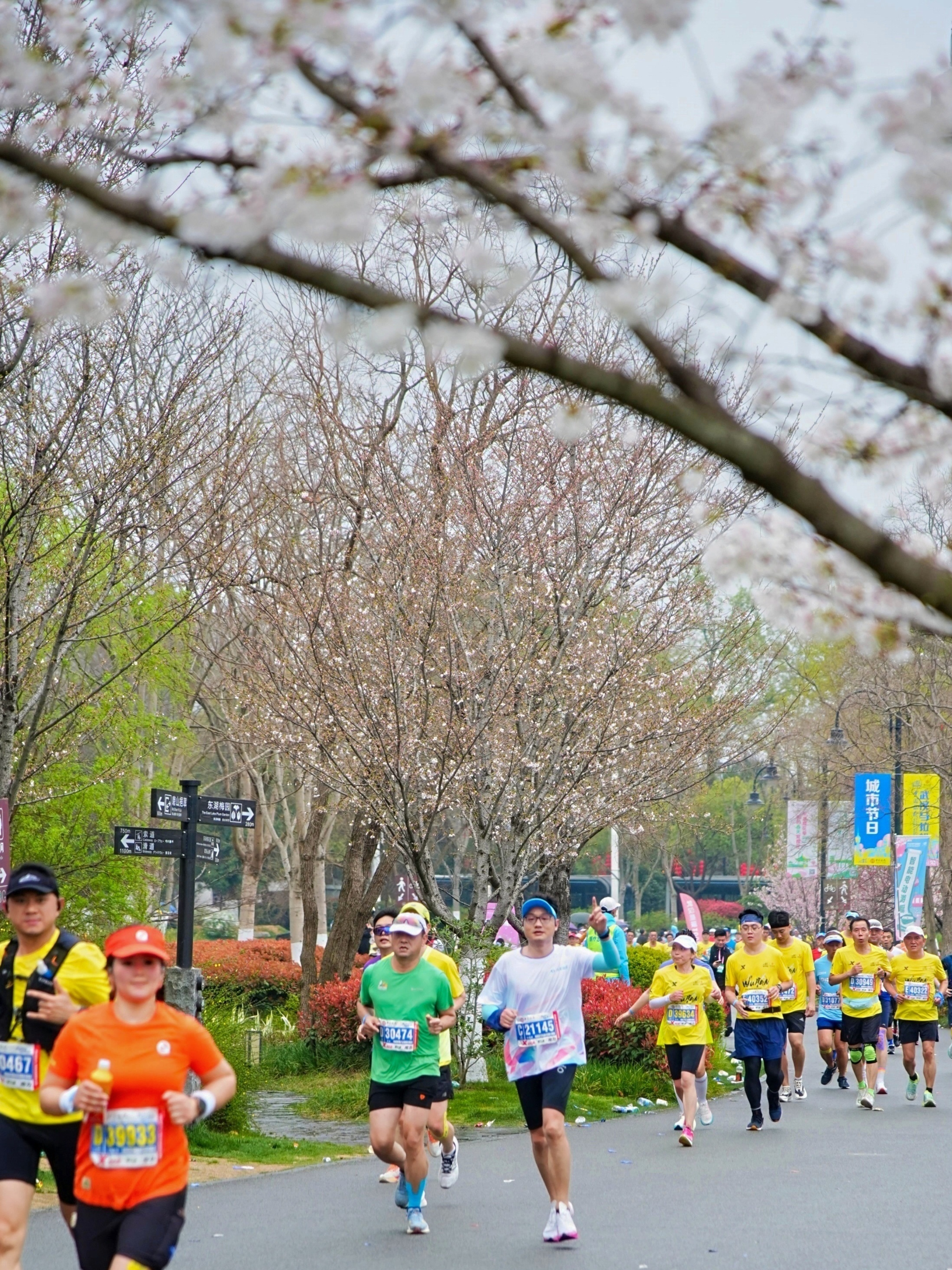 据了解,汉马东湖绿道赛段樱花总数达400余棵,在汉马摄影师的拍摄画面里,沿线时令花卉花开正好,奔跑的人群与花海融成流动的春日画卷,“跑进画中”的浪漫瞬间被一一捕捉。
