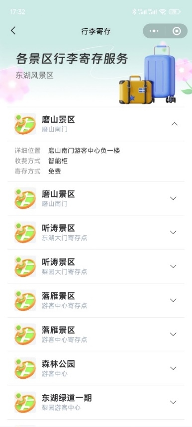 游客还可通过小程序查询行李寄存等便民信息。