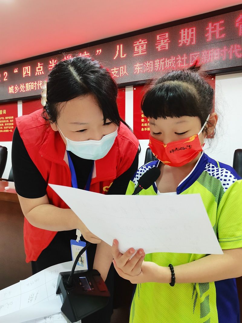 据了解,东湖新城社区“四点半学校”社区暑期托管班服务时间为7月1号至8月31号,托管时间为周一至周五的14:30—17:00,面向群体为东湖新城社区常住的小学生。其中辅导老师均由社区党员和社工志愿者组成。托管班设计了辅导暑假作业、国学文化、手工绘画、安全教育等课程,为家长减负的同时也为孩子创造了更加充实、多姿多彩的暑期生活。