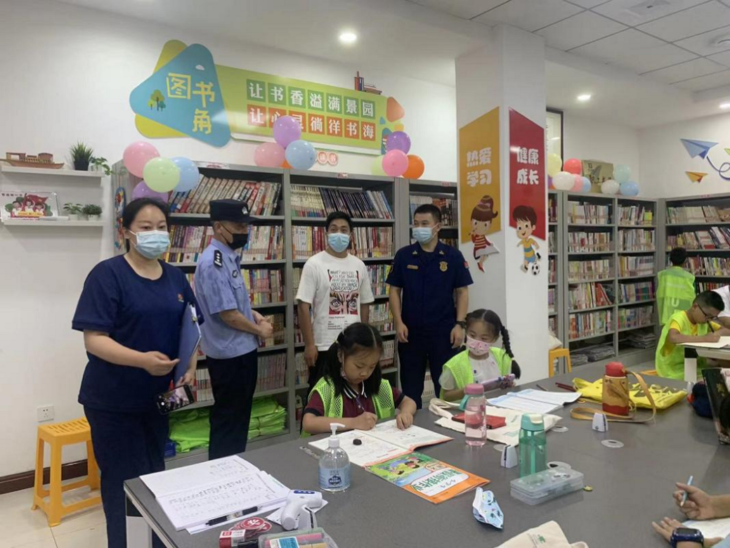 7月5日上午,东湖景园社区开启新时代文明实践站暑期托管班“第一堂课”。在社区服务中心图书室,五层高的大型书架上摆满了书籍,现场水彩笔、画板、象棋、积木等文娱用品一应俱全。“帮助家长带好孩子可以让社区更和谐,也是满足群众需要,为群众办实事。”社区书记陈保娣说,为了确保孩子们安全度过暑假,志愿者及工作人员,每天严格按照疫情防控要求做好消杀、测温等工作。