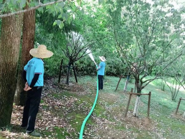 连日来,东湖听涛景区50余名园林工人坚守在管养面积达34万平方米的工作岗位上,进行浇水抗旱保苗、日常修剪除杂、病虫害防治等,默默守护着城市的绿色。