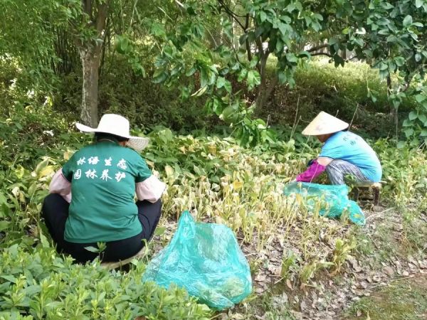 东湖听涛景区园林工作者汗水渗透了衣衫。
