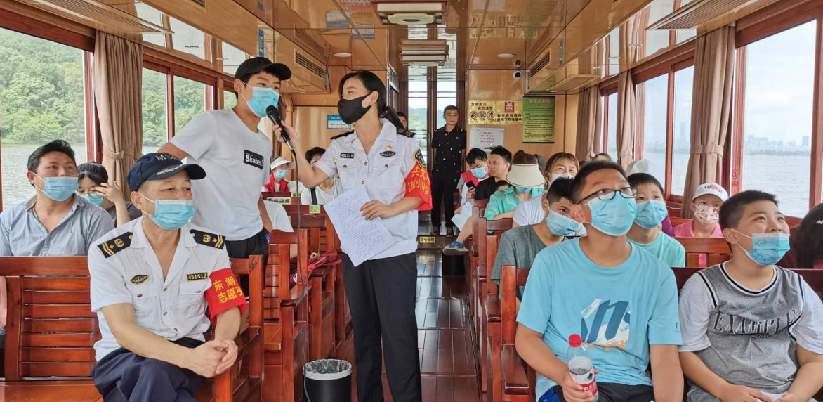 水上安全知识课堂还一路讲到了东湖游船上,来自东湖风景区湖光村的学生和家长们登上游船,实地感受水上交通执法工作,东湖海事处志愿者从乘船、预防、自救、救人四部分开讲,并带着孩子们学习穿戴救生衣,了解救生知识,在大家心中“播种”下安全的小苗,受到了学生与家长的一致好评。(长江日报记者薛灵毓 晋晓慧 通讯员彭冲 付彬 王瓒 许玲)