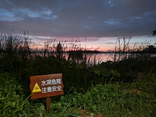 “能轻易走到水边的地方,就觉得需要提醒一下游客,这里有安全隐患。”江肖良说,在巡湖中曾遇到过野泳的市民,但当时野泳者已游出很远一段距离,无法劝阻,“那天已是傍晚,天都快黑了,依稀看到一个人影在湖水里起伏换气,人也快游到了湖心,万一出什么事,还是比较危险的。”江肖良和张铭特意找到周边能下水的地方,安置了一个“水深危险,注意安全”的警示牌,张铭接连拍下多张警示牌的图片与所在定位一起发到了东湖民间湖长微信群里。