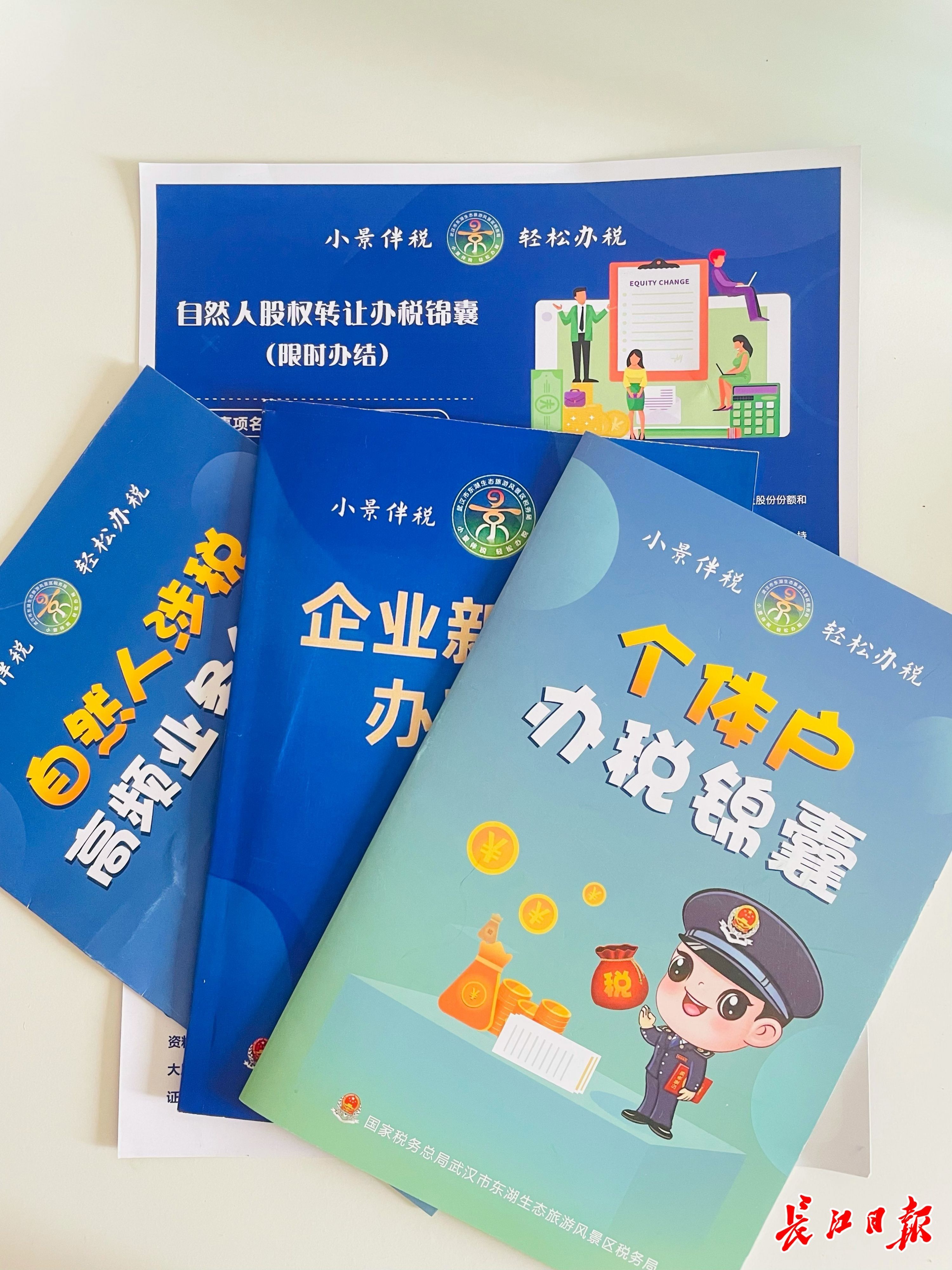 定制服务“锦囊”针对新办个体户、新办企业、自然人涉税高频业务、自然人股权转让的情况,以“小景提示”告知纳税人须注意事项,以流程图清晰展示操作步骤,让纳税人、缴费人手持锦囊,一看就会。到税务局办理新户登记的郑先生起初还担心税务事项太复杂,而当他对照《个体户办税锦囊》走流程时,感到十分顺畅。记者打开《个体户办税锦囊》,看到里面涵盖信息报告类、税控设备类、发票类、申报类等不同内容,“小景提示”也将操作中会遇到的问题进行解答。郑先生说:“这真是锦囊妙计,将信息确认、税控设备、发票、申报都说得清楚明了,让我这个门外汉也能迅速办完业务。”