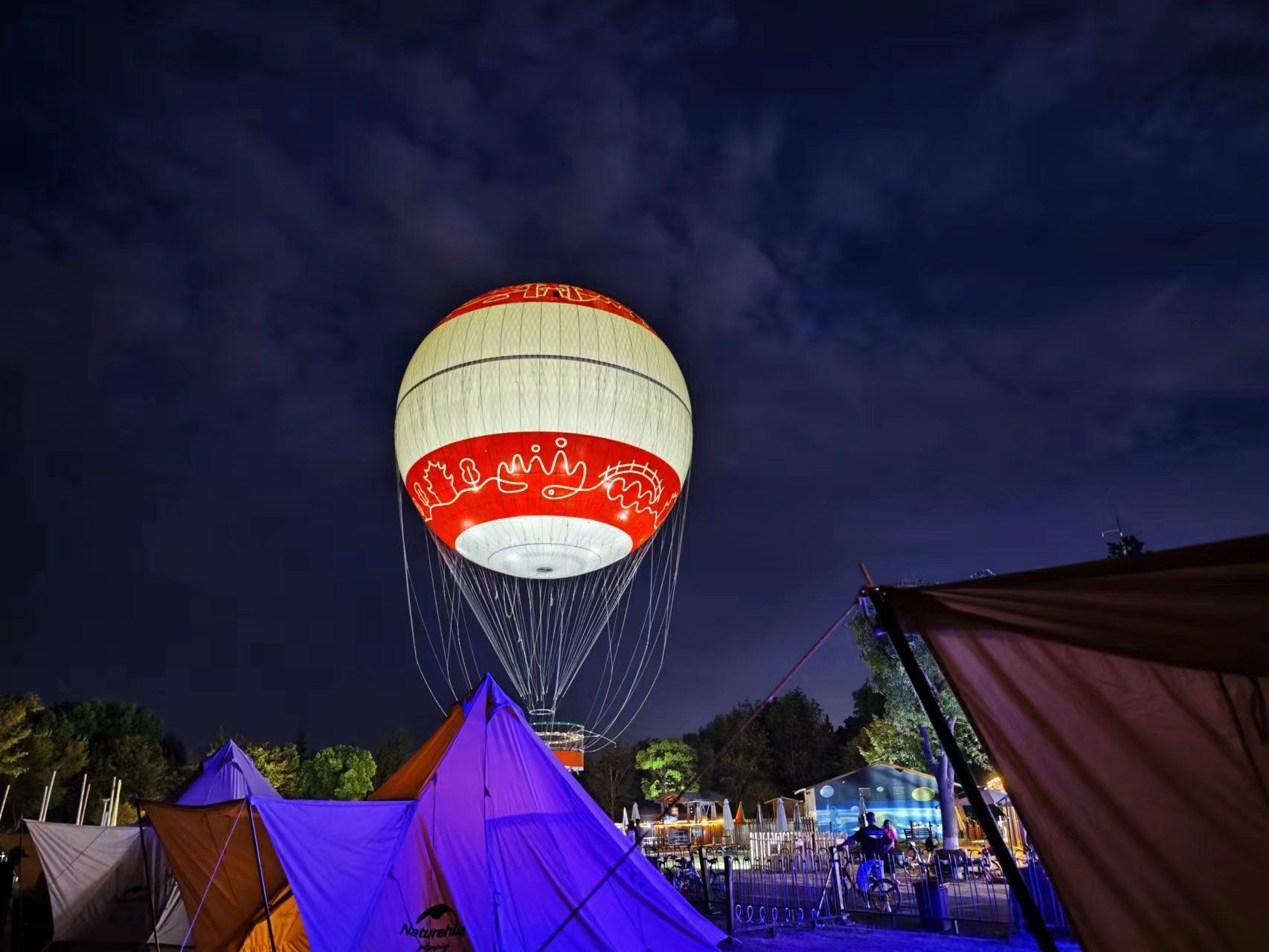 国庆假期,在氦气球下,游客可伴随着大自然星空露营听音乐。