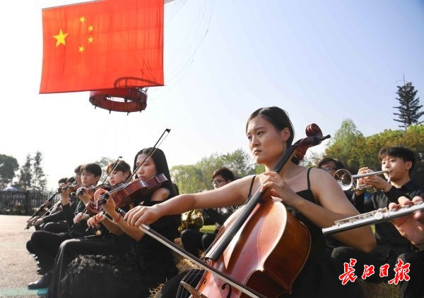 歌颂伟大的祖国,唱响幸福的旋律。早上8时许,清晨的阳光洒落在东湖,在东湖绿道湖心岛氦气球草坪营地,武汉音乐学院的学生们错落而坐,用音乐表达他们对祖国的美好祝福。这场别样的“森林音乐会”让市民在东湖畔感受高雅的文化艺术氛围,乐曲时而轻盈灵动、时而欢腾活泼、时而大气磅礴,让观众跟随旋律沉醉其中的同时,也激发了大家的爱国热情。