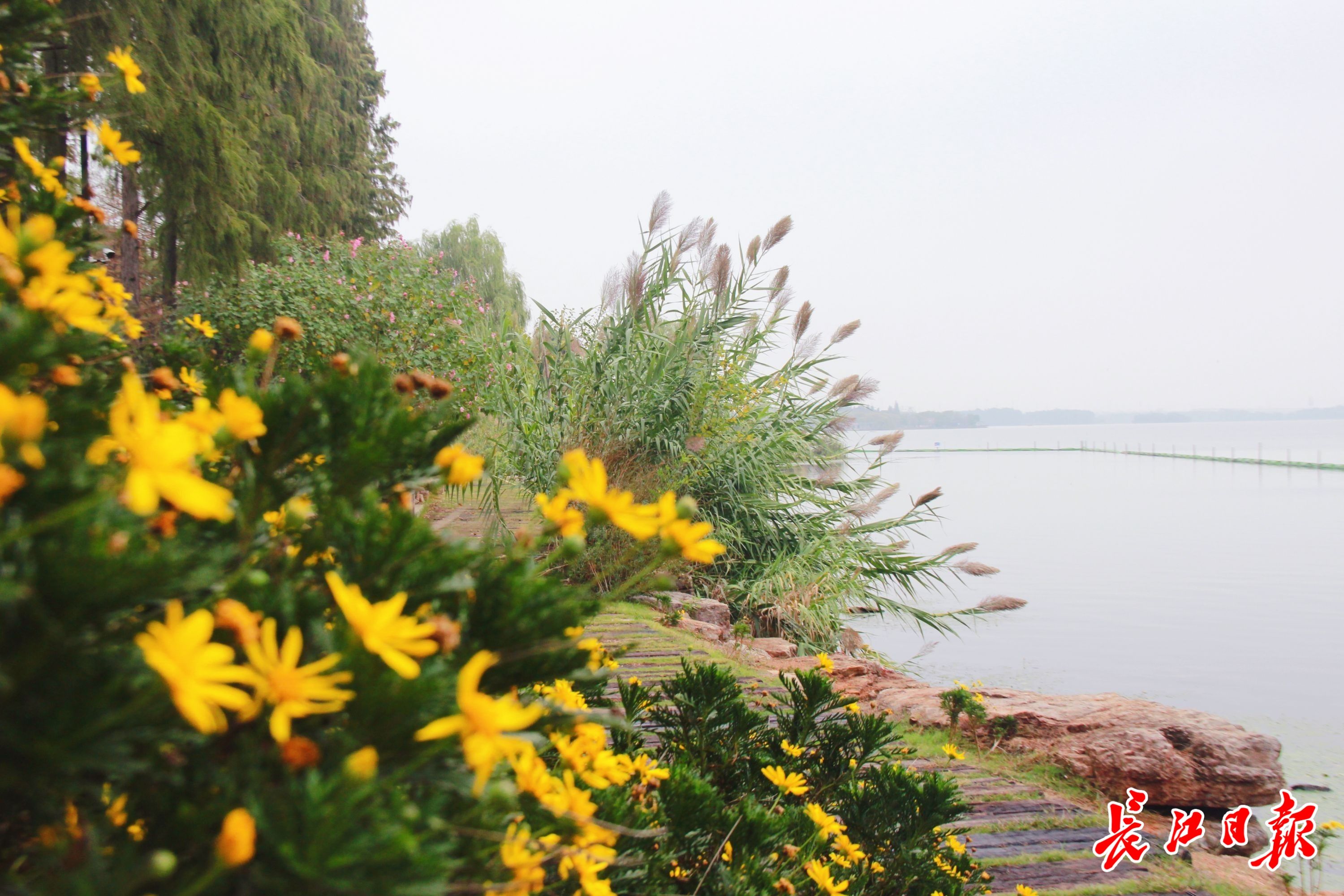 金钱菊和芦苇为东湖绿道点缀了更多秋意。记者晋晓慧 摄