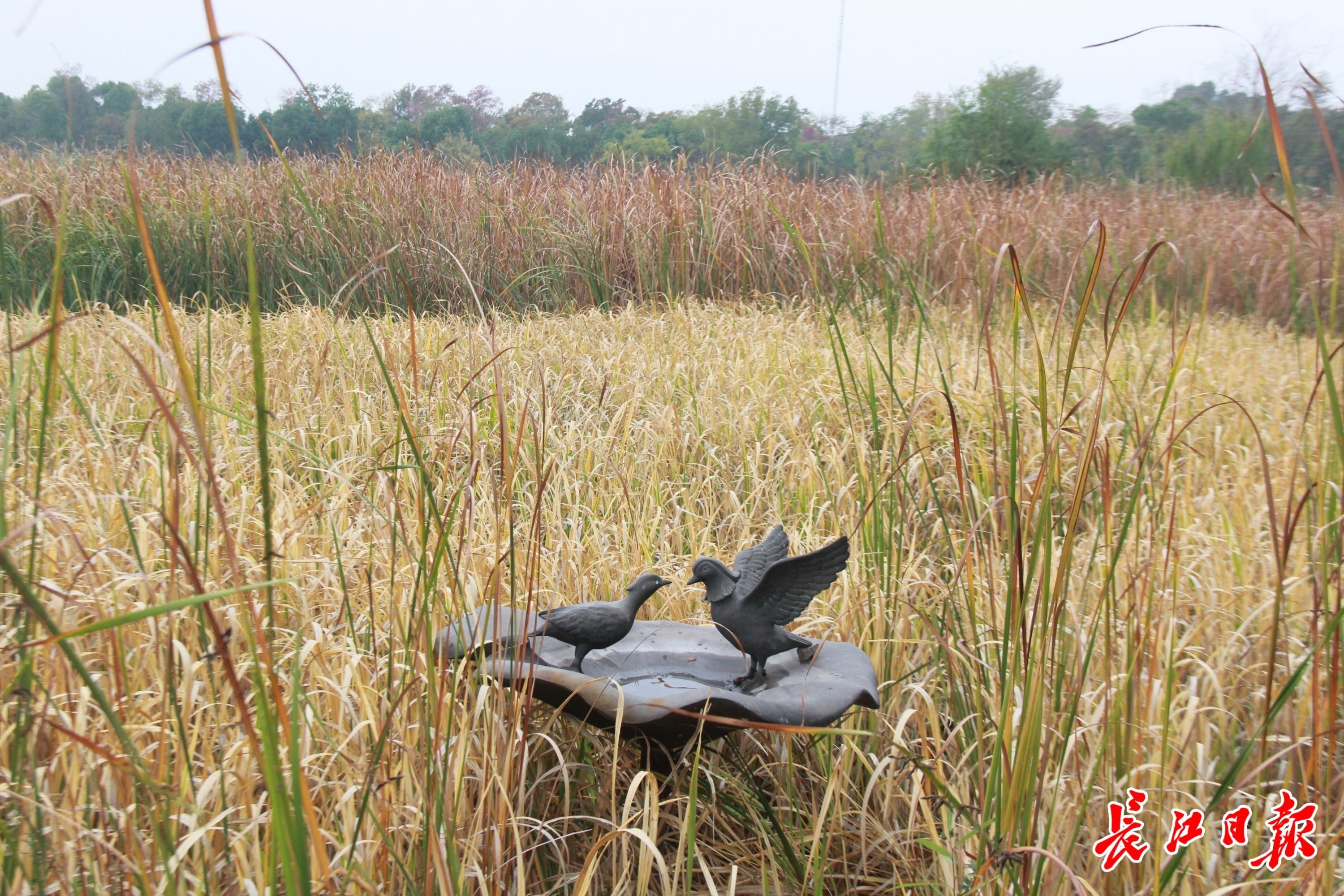 两只“鸳鸯”嬉戏在“金色海洋”中。记者晋晓慧 摄