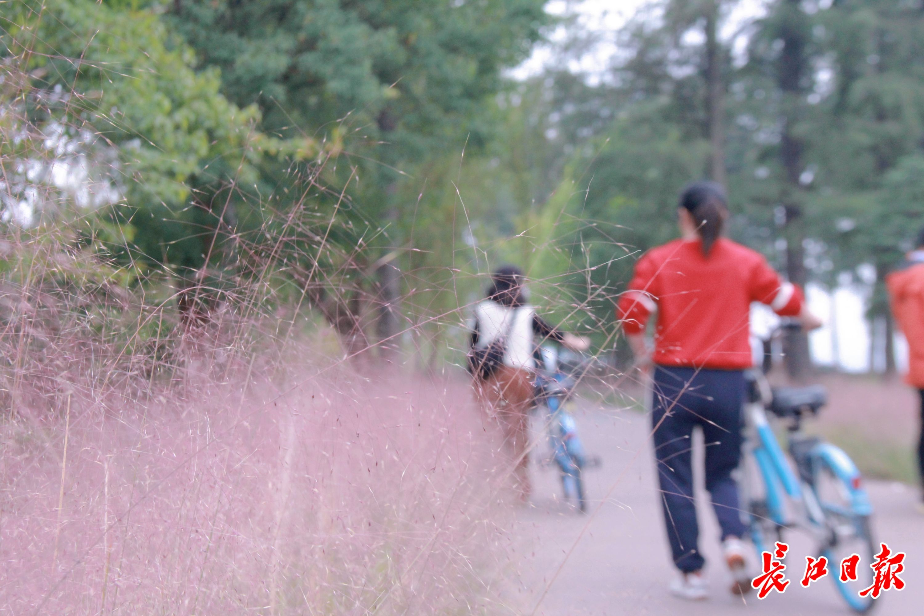 东湖绿道沿线的粉黛乱子草。记者晋晓慧 摄