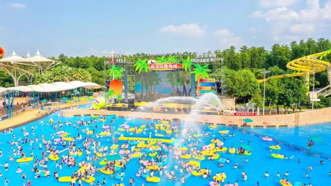 椰林蓝海碧波荡漾,水上飞人潇洒自如,花车巡游热情洋溢……玛雅海滩是夏日东湖“人气王”。在音浪泳池跟着节拍跳舞律动,成为备受年轻人喜爱的时髦玩法。“为保证游客玩水卫生安全、健康权益,我们在大门处设立了水质数据监视屏,每两个小时都会有专业人员对园区的水质进行检测与公示。游客更换泳装后会经过水帘消毒,可以放心、安全地使用乐园场所。”