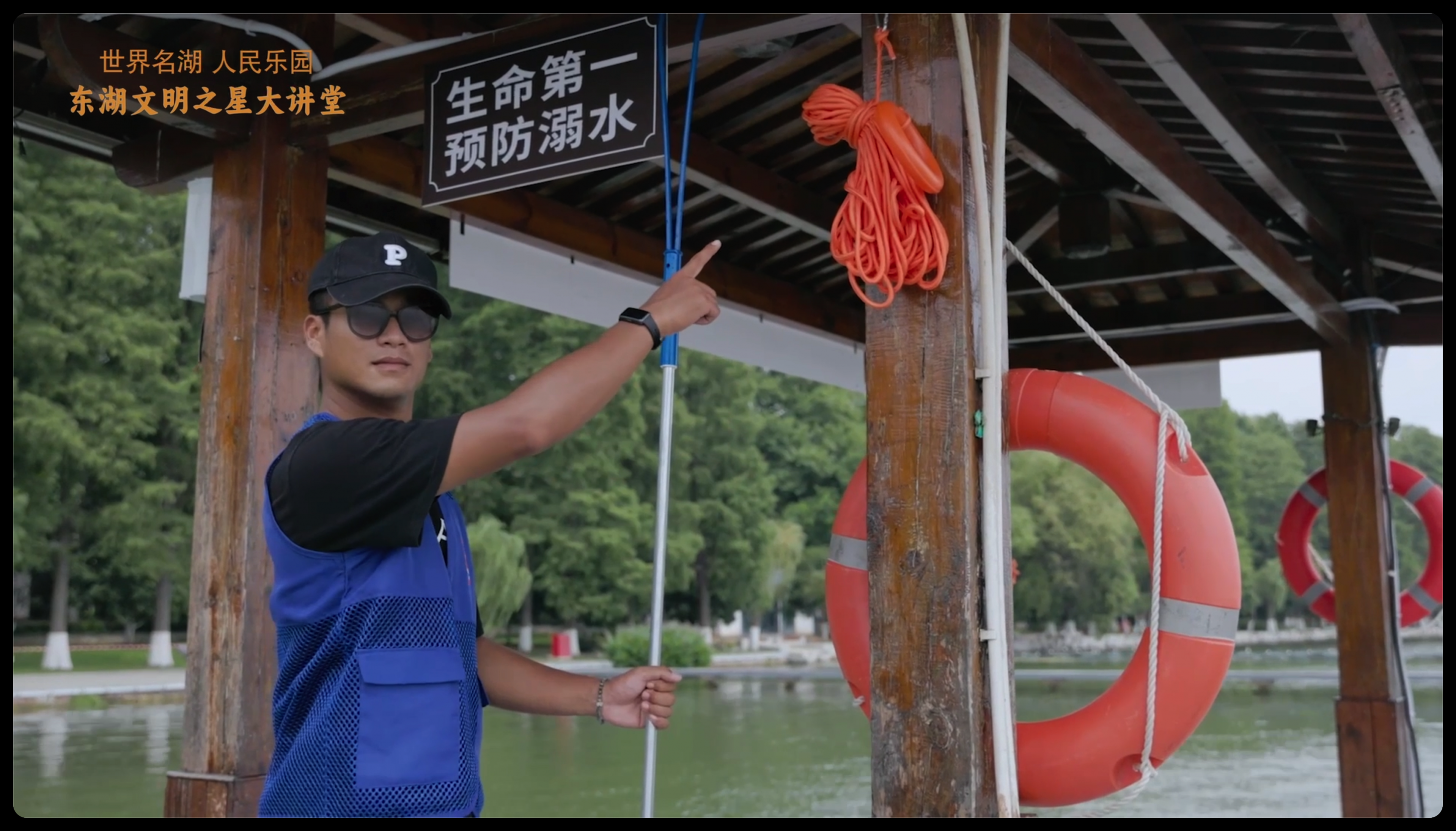 清晨,东湖水天交接处微微泛红,东湖公安分局水上派出所民警饶云龙整理好制服,带上手电筒和口哨,向凌波门前进……8月11日,世界名湖人民乐园2023东湖文明之星大讲堂线上开播,镜头聚焦炎炎夏日下坚守湖畔的东湖工作者,他们使出“十八般武艺”守护一方安澜,为游客安全玩水、纳凉避暑保驾护航。当天超43万网友在线观看,互动氛围热烈。