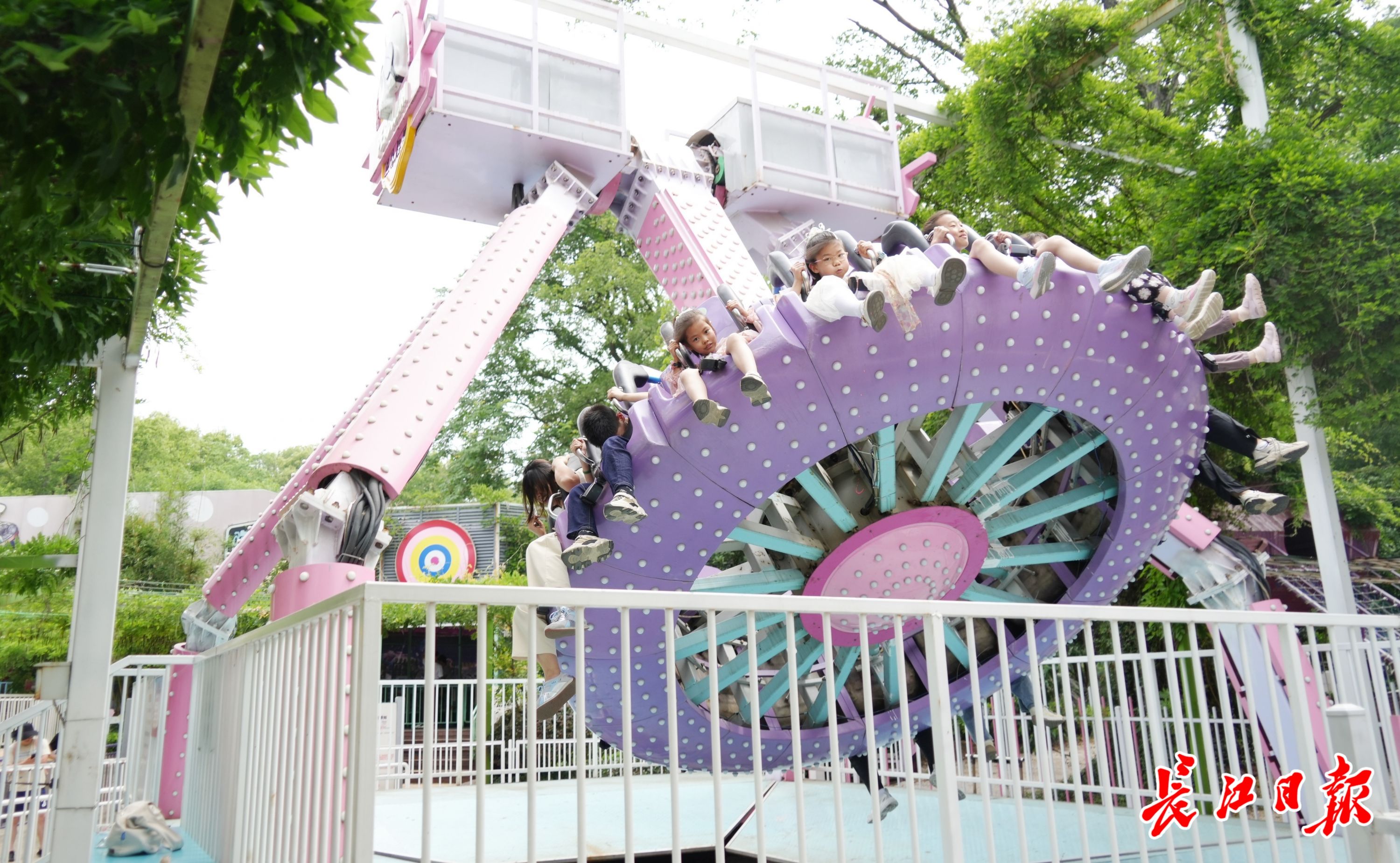 武汉欢乐丛林,游客在花团锦簇中体验户外游乐项目。长江日报记者 何晓刚 摄
